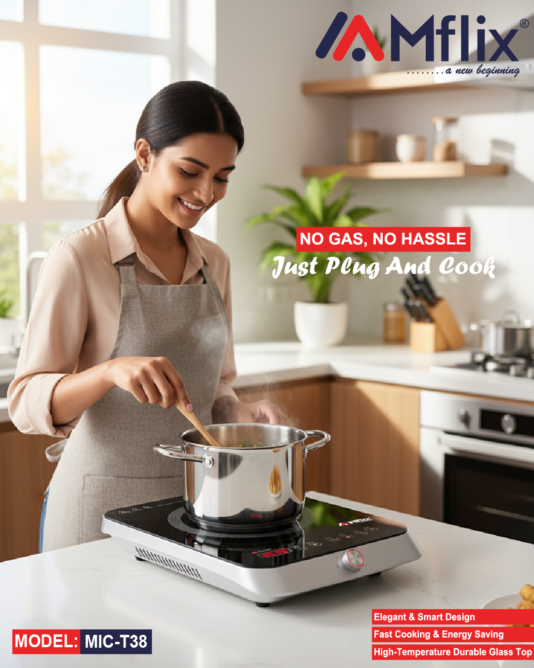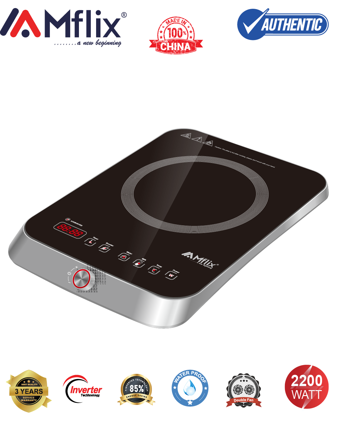 MFLIX Induction Cooker – Model: MIC-T38 – High Power 2200W with Inverter Technology