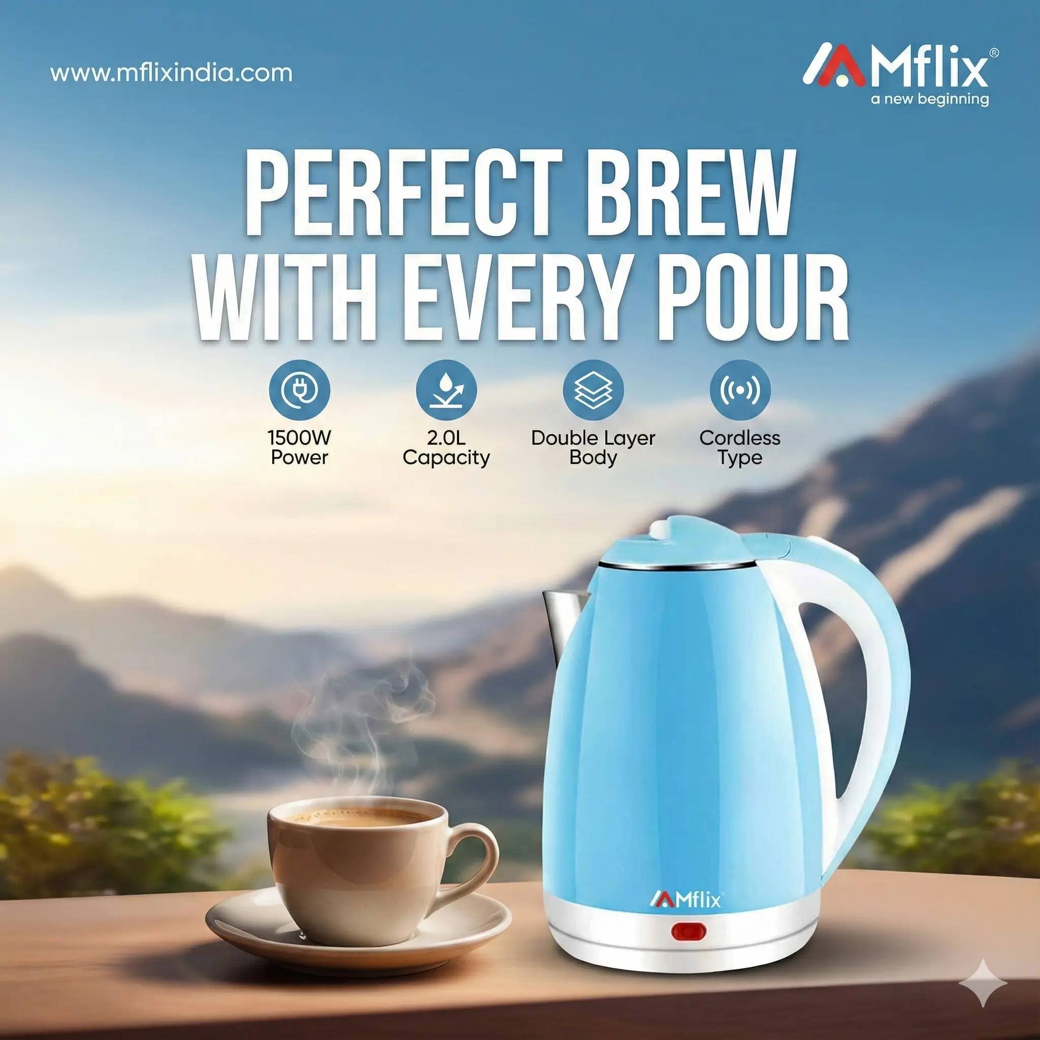 Upgrade your kitchen efficiency with the MFLIX MEK-202D. Designed for larger families and offices, this Double Layer Electric Kettle offers a perfect balance of safety, speed, and style. Its generous capacity ensures you never run out of hot water when you need it most.