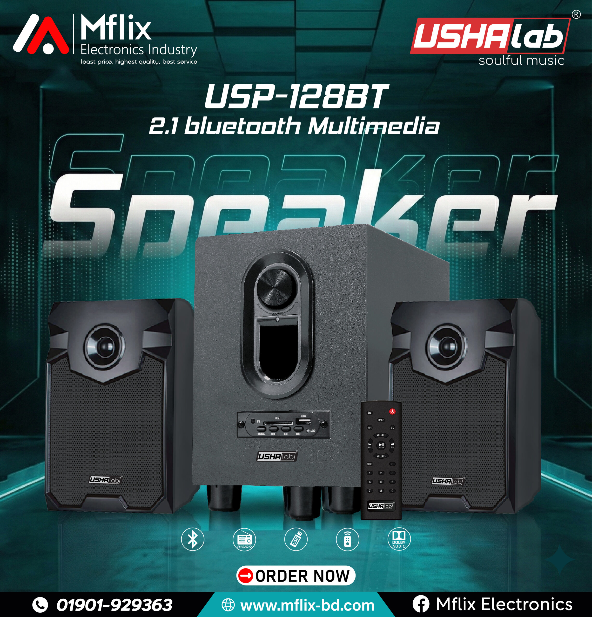 USHALAB USP-128BT 2.1 Multimedia Speaker System
