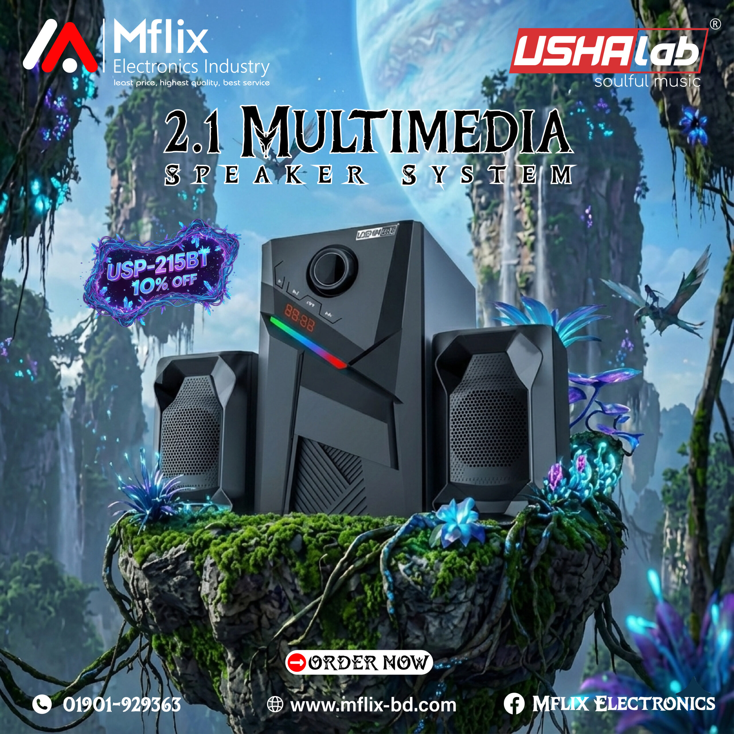 Do you need powerful sound for your home? The USHALAB USP-215BT is the perfect solution. This 2.1 multimedia speaker system offers high performance and a professional design. It is built to impress any audio lover in Bangladesh.
