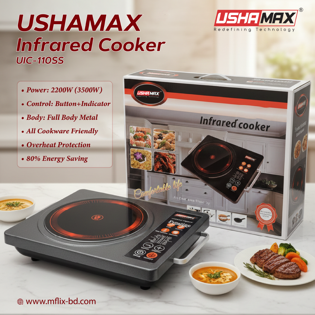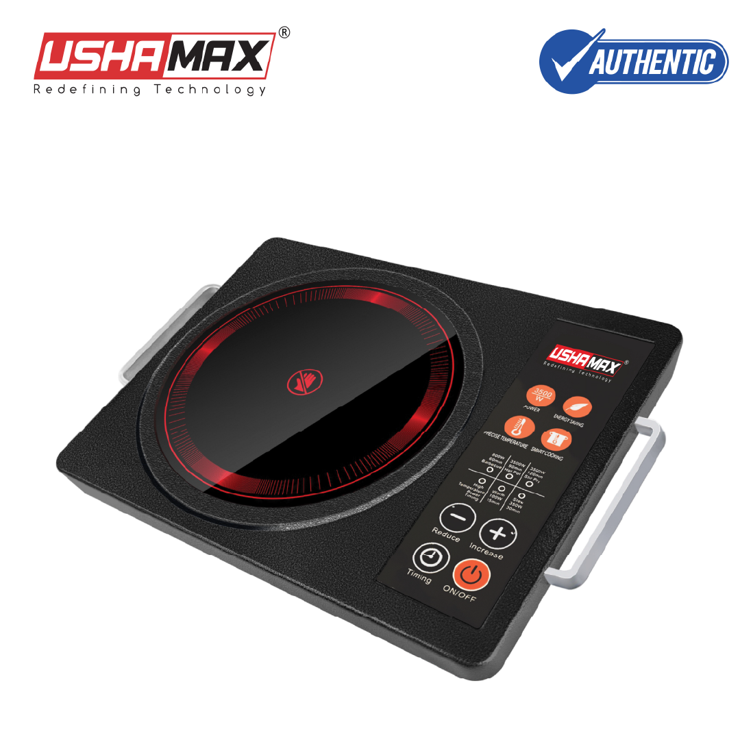 Experience unmatched durability with the USHAMAX UIC-110 SS Infrared Cooker. This model is designed for rough and tough use. It features a Full Body Metal structure. It is stronger than plastic cookers. With high power capacity, it handles heavy cooking easily.